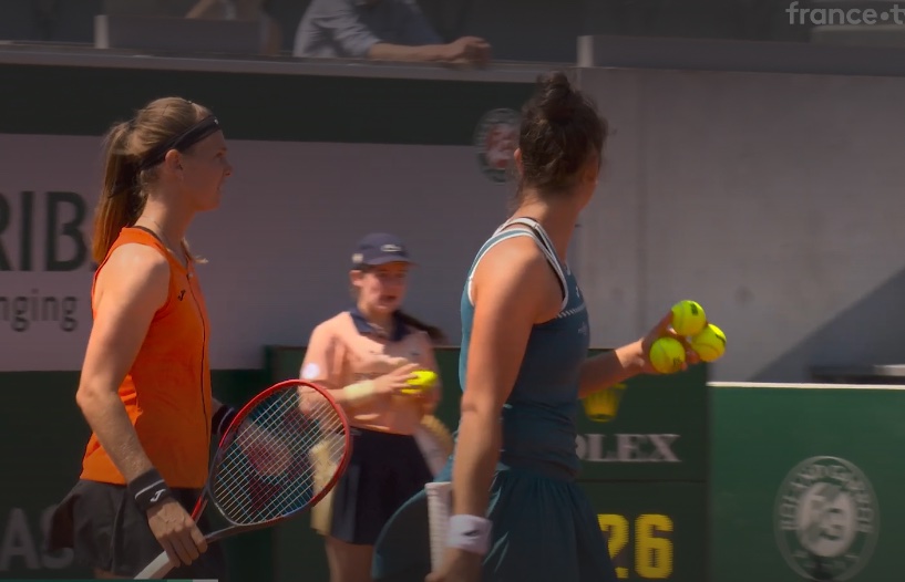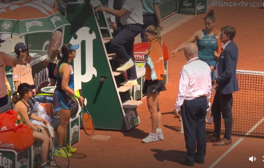 Match de double féminin dimanche 4 juin 2023 entre d’un côté la japonaise Kato et l’indonésienne Sutjiadi, et de l’autre côté la tchécoslovaque Bouzkova et l’espagnole Sorribes-Tormo. Après la fin du 4ème jeu du deuxième set, la japonaise qui vient de servir envoie une balle vers une ramasseuse placée au fond de cours derrière ses adversaires puisque c’est à leur tour de servir. Malheureusement la ramasseuse de balle ne regarde pas dans sa direction, elle ne voit la balle arriver qu’au dernier moment et n’a que le temps de tourner la tête pour la recevoir dans la nuque.